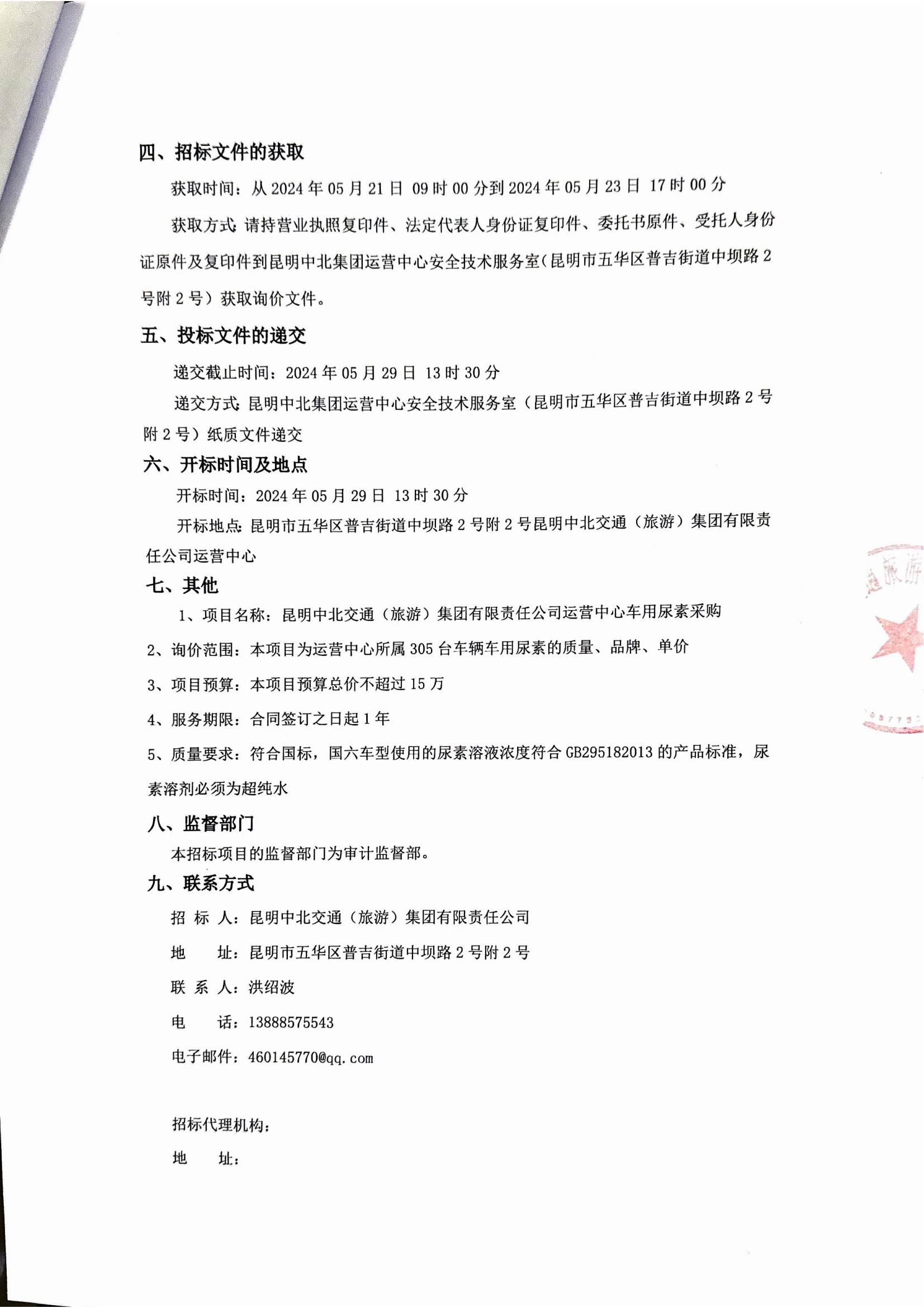 昆明中北交通(旅游)集團有限責任公司運營(yíng)中心車(chē)用尿素采購項目詢(xún)價(jià)公告(招標編號ZBXJYY2024-0001)_02