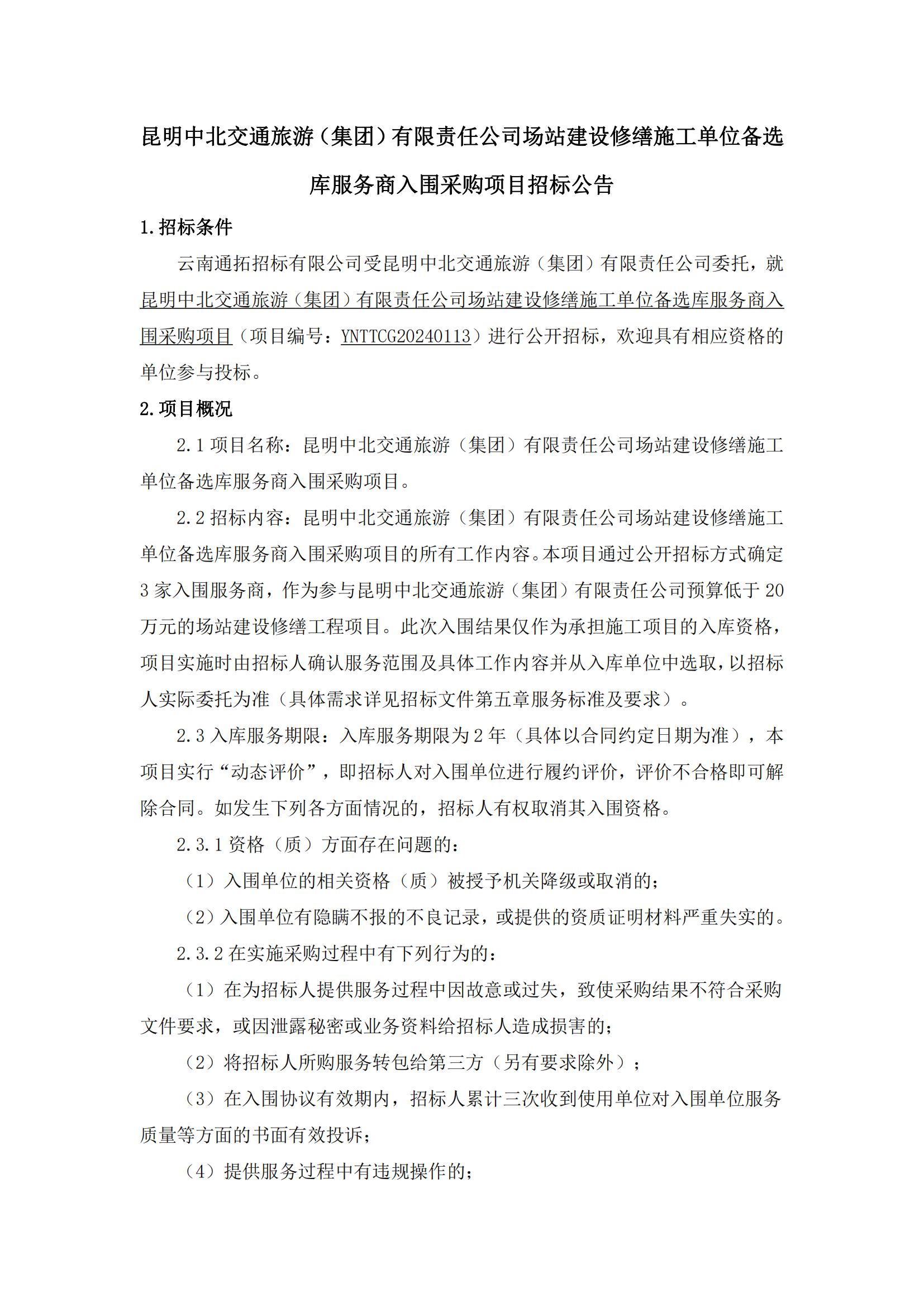 昆明中北交通旅游(集團)有限責任公司場(chǎng)站建設修繕施工單位備選庫服務(wù)商入圍采購項目招標公告