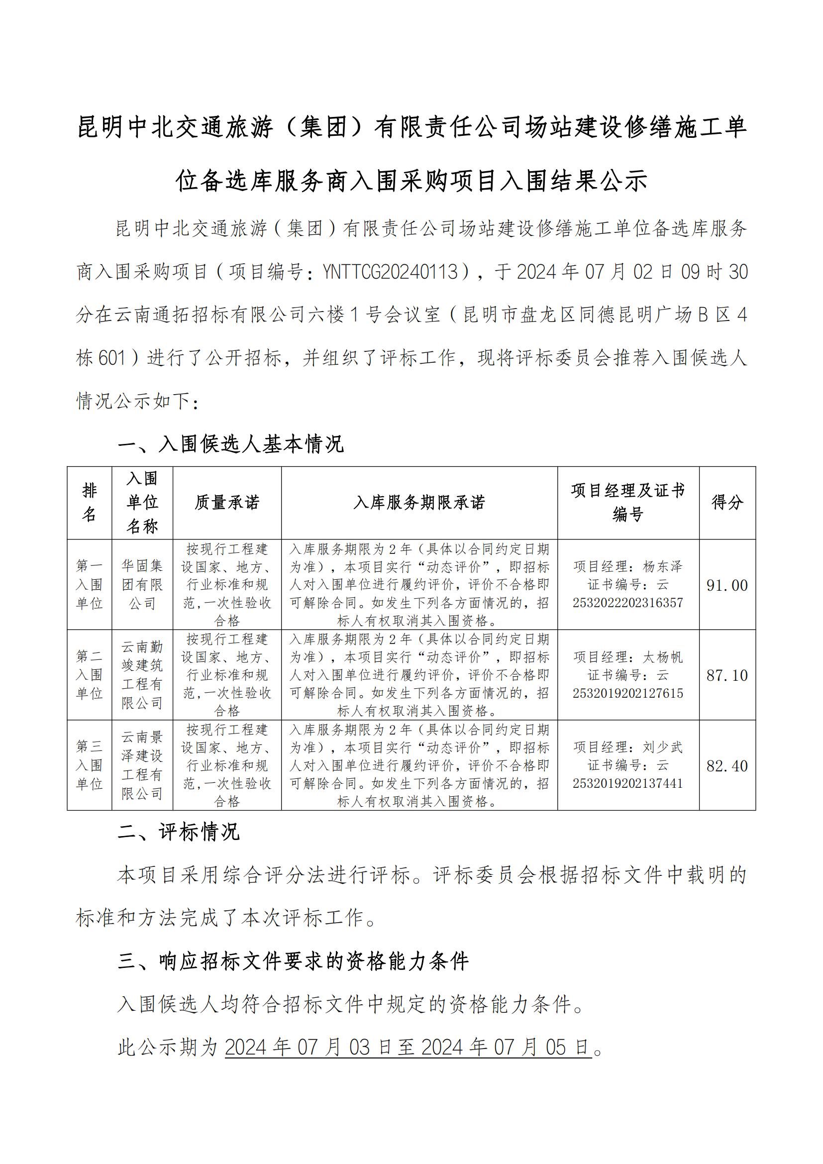 昆明中北交通旅游(集團)有限責任公司場(chǎng)站建設修繕施工單位備選庫服務(wù)商入圍采購項目入圍結果公示